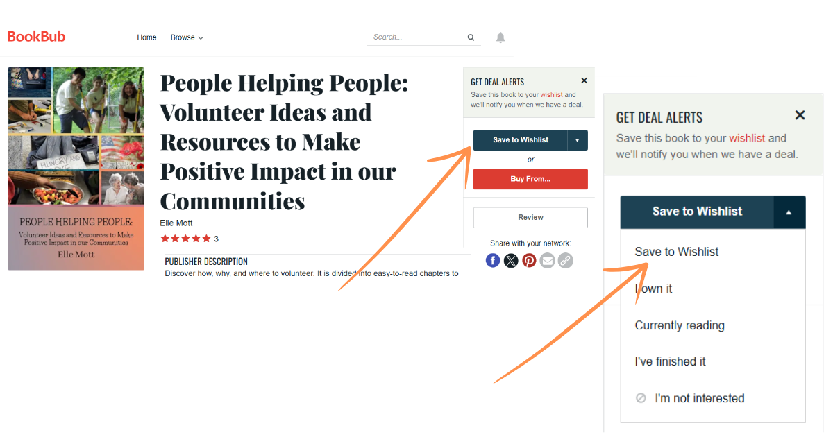 On the BookBub page for this book, click “Save to Wishlist” and then again, “Save to Wishlist.”